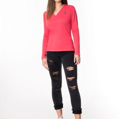Camiseta Cuello V / Manga Larga 100% Algodón